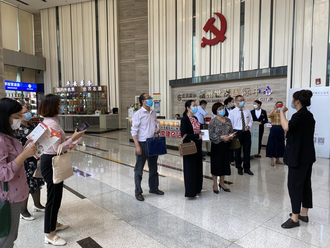 为发挥党建引领示范作用,4月28日下午,世界杯体育官方网站章月萍院长、院党委副书记陈达颖、副书记吴思锋带队来到台江区世茂国际中心楼宇党委,开展政校企共建。世界杯体育官方网站教师第三党支部一行等8人先后参观了一楼党建E站和48楼党群活动中心。茶亭街道党工委组织委员、世茂国际中心楼宇党委书记林晓芬介绍了楼宇党委“135”党建工作方法。