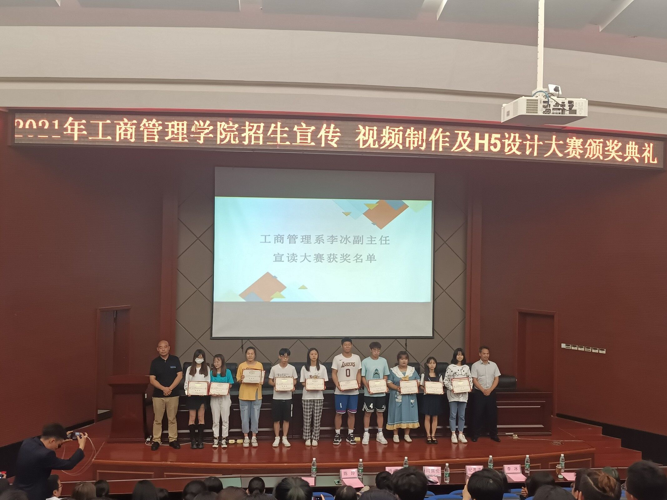 本次大赛分为物业管理专业和零售业管理专业两个赛道,历经短短一个半月的筹备和选拔,组委会收到了来自四个专业,参赛学生人数近200人所自主创作的视频及H5作品31个,学生创作热情高涨,成果丰硕。在颁奖典礼的现场,企业嘉宾及学院领导向获奖团队代表颁发了荣誉证书及奖品,并观看了各赛道视频制作及H5设计一等奖的参赛作品,企业嘉宾对本次大赛的参赛作品给予了很高的评价及肯定,认为学生在设计思路和制作技术上都具备相当高的水准,作品不仅能够体现本专业的特点及优势,同时也具有很强的新媒体的传播性。