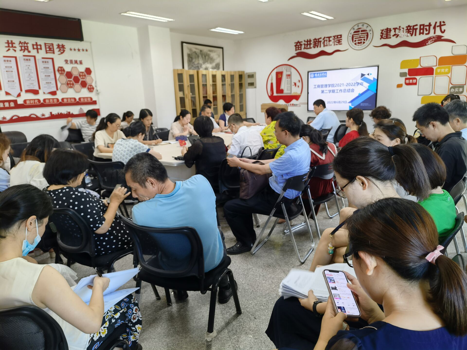 6月29日上午,世界杯体育官方网站召开2021-2022学年第二学期全体教职工期末工作总结会,总结本学期学院工作情况,传达学校暑假工作部署。