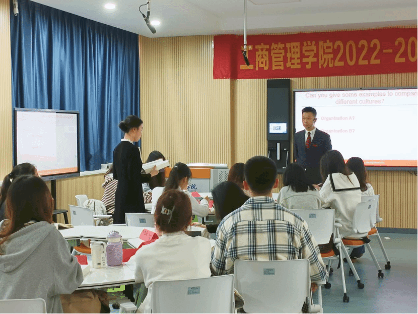 上课铃响,林龙老师以趣味问题为引,迅速活跃了课堂氛围。随即,老师将问题嵌入课题,通过小组讨论的方式,快速打开同学们的思维,大家踊跃举手,发表个人见解。此外,同学们还上台对课题进行了深度剖析并举例介绍说明,不断加强课堂理论知识的学习,真正落实师生同台新型教学方式。课程接近尾声,同学们对课堂内容进行整理归纳,听课教师们也对此次观摩课的教学方式进行交流学习。