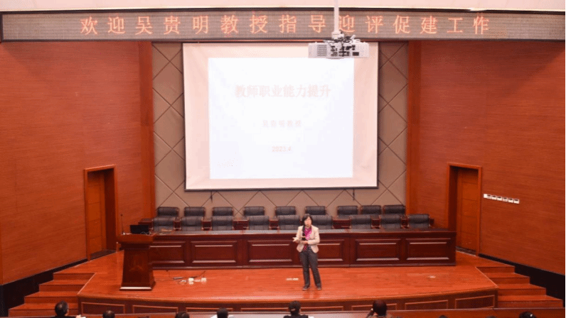 4月11日下午,吴贵明教授应邀到世界杯体官网作题为“迎评促建,教师职业能力提升”专题讲座。世界杯体育官方网站和金融学院全体教师共110多人参加学习此次讲座。