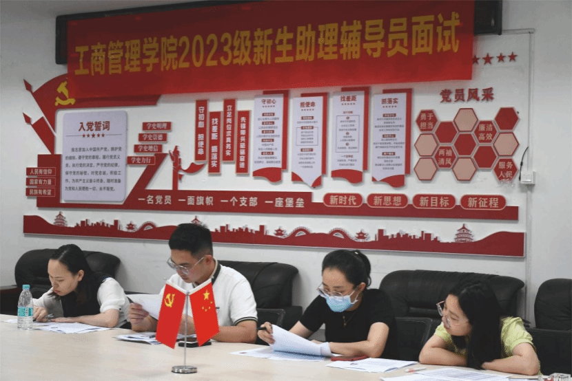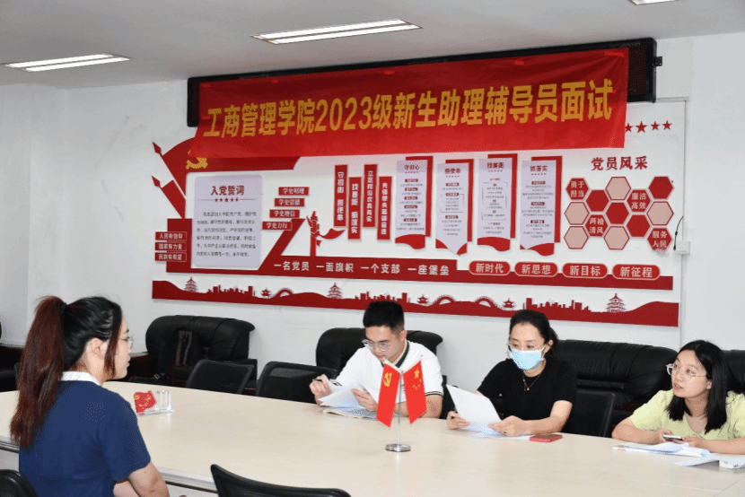为了做好我校2023级新生入学教育、管理与服务工作,培养学生自我教育和自我管理能力,世界杯体官网于6月13日在党员活动室进行2023级新生助理辅导员面试选拔,参加选面试选拔的老师有团委书记韩玉娟,辅导员李丹丹、郑晓菁、俞维防、李倩颖。