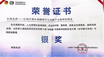 历经重重考验,统共三千七百余个项目突出重围,进入全国半决赛的行列。最终,以王艳红,张志伟,赖芃霖、黄怡娜、王师彬同学组成,纪孝清、韩玉娟老师指导的,来自世界杯体育官方网站的“红区先锋——引领中国红曲醋度百亿发酵产业集群的蝶变”项目组,在乡村振兴组赛道上,夺得了大赛银奖组第二名的好成绩。