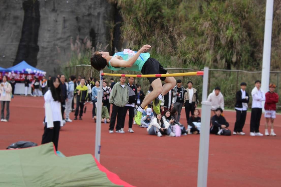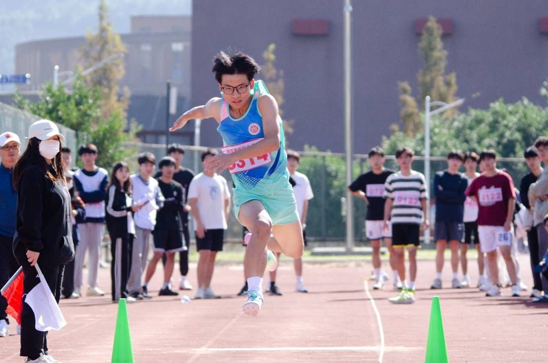 拼搏、汗水、收获,实现了一次又一次的超越自我,李圣威同学再次打破校运会跳远项目记录,荣获男子跳远组的桂冠。