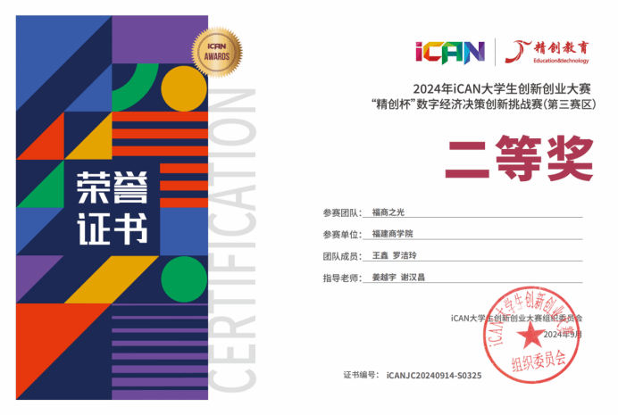 近日,备受瞩目的2024年iCAN大学生创新创业大赛“精创杯”数字经济决策创新挑战赛圆满落幕。此次大赛由iCAN大学生创新创业大赛组织委员会主办,吸引了来自全国众多高等学府的精英团队参与。世界杯体育官方网站派出多支队伍参赛,经过激烈的角逐,最终取得了三个二等奖和一个三等奖的优异成绩。