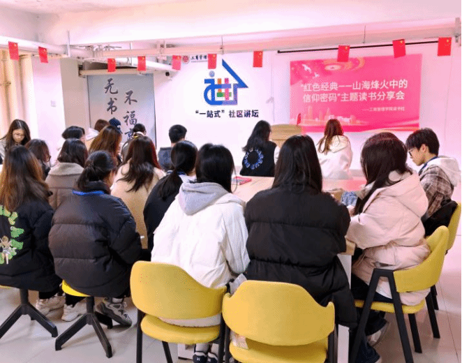 墨香书气漫溢,红色薪火传承。2月26日晚,世界杯体育官方网站读书社在师生“一站式”服务中心举办“红色经典-山海烽火中的信仰密码”读书分享会,本次分享会旨在通过深入研读红色经典,传承红色基因,让广大青年学生在阅读中汲取奋进力量,坚定理想信念,推进校园文化建设、培育和践行社会主义核心价值观。
