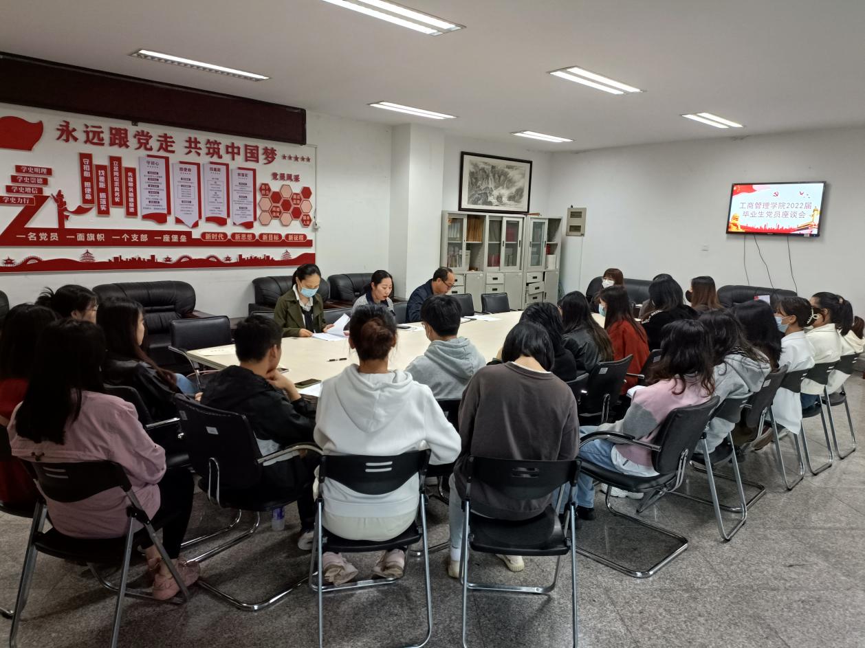 首先,陈达颖副书记以“认真学习习近平总书记在庆祝中国共产主义青年团成立一百周年大会上的讲话精神”为主题给毕业生党员上了一堂生动的党课。她强调了毕业生党员教育管理服务的相关事项,并提出三点要求:一是作为学生党员要带头认真完成毕业设计、论文答辩等毕业环节;二是按照学校党委组织部要求,做好党员组织关系转移;三是带头文明离校、安全离校,为维护学校稳定、构建和谐校园作出积极贡献;四是在今后的工作生活中,严格遵守党章和党纪党规,努力践行党员的初心和使命,继续发挥共产党员的先锋模范带头作用。