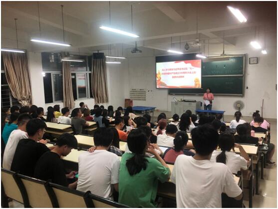 2021年9月8日晚上,世界杯体育官方网站读书社联合学生党支部在马尾校区诚信楼T1开展理论宣讲,宣讲主题为“深入学习贯彻习近平总书记在‘七一’庆祝中国共产党成立100周年大会上的重要讲话精神”,此次宣讲由世界杯体育官方网站学生第二党支部书记王鹤云主讲。