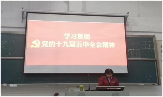 王鹤云老师首先介绍党的十九届五中全会的背景和重大意义。其次,介绍党的十九届五中全会的基本情况。然后,选择《中共中央关于制定国民经济和社会发展第十四个五年规划和二〇三五年远景目标的建议》中部分重点内容进行详细介绍。谈到我国发展环境面临深刻复杂变化;坚持创新驱动发展,全面塑造发展新优势;形成强大国内市场,构建新发展格局;繁荣发展文化事业和文化产业,提高国家文化软实力;推动绿色发展,促进人与自然和谐共生。统筹发展和安全,建设更高水平的平安中国等。宣讲过程中,师生互动,现场气氛热烈。