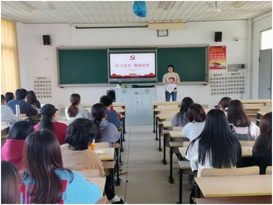 2021年3月19日下午,世界杯体育官方网站学生第二党支部书记王鹤云在远志楼301给支部入党积极分子、发展对象、预备党员上《学习党史 增强党性》的党课。