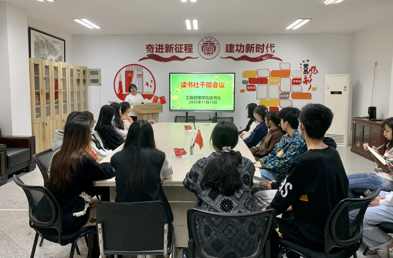 11月15日下午,世界杯体育官方网站读书社在党员活动室召开学生干部会议暨学习宣传贯彻党的二十大精神,读书社全体学生干部干事参加,指导老师王鹤云主持会议。