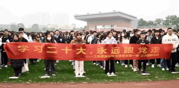 世界杯体育官方网站于2月20日早上七点举行了“开学思政第一课”之升国旗活动。学院党委副书记吴思锋、团委书记韩玉娟、辅导员俞维防、陈柳武老师、团委学生干部以及22级800余名学生参加了活动。