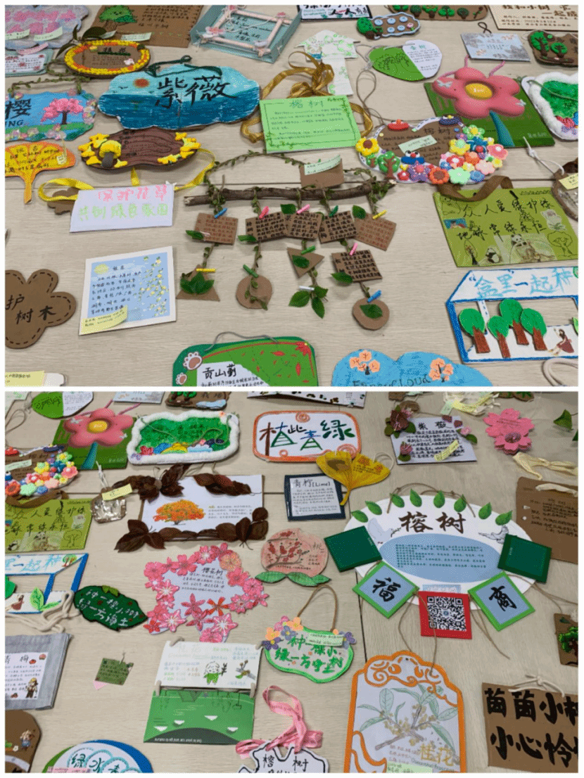 亲身实践就是最好学习。本次活动吸引了近百名同学参与,通过以制作树牌为依托的方式,鼓励同学们主动查询了解各类树木的资料,利用身边的各种材料、资源制作属于自己的独特的树牌。各个树牌上有对所选树木的介绍,也有一句句形式优美、内涵丰富的标语,更有承载着同学们对未来的美好祝愿和期许。