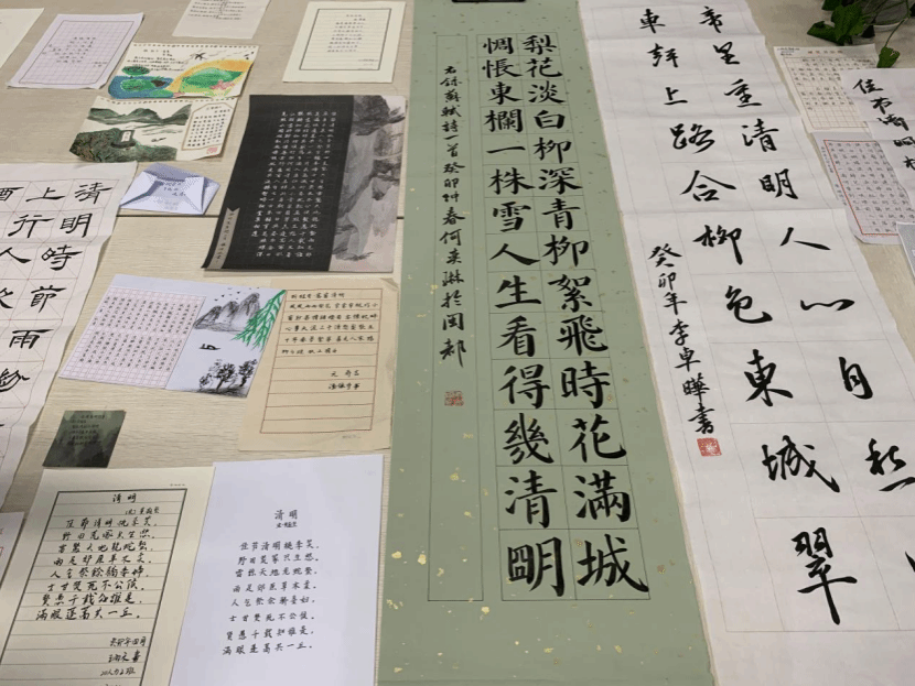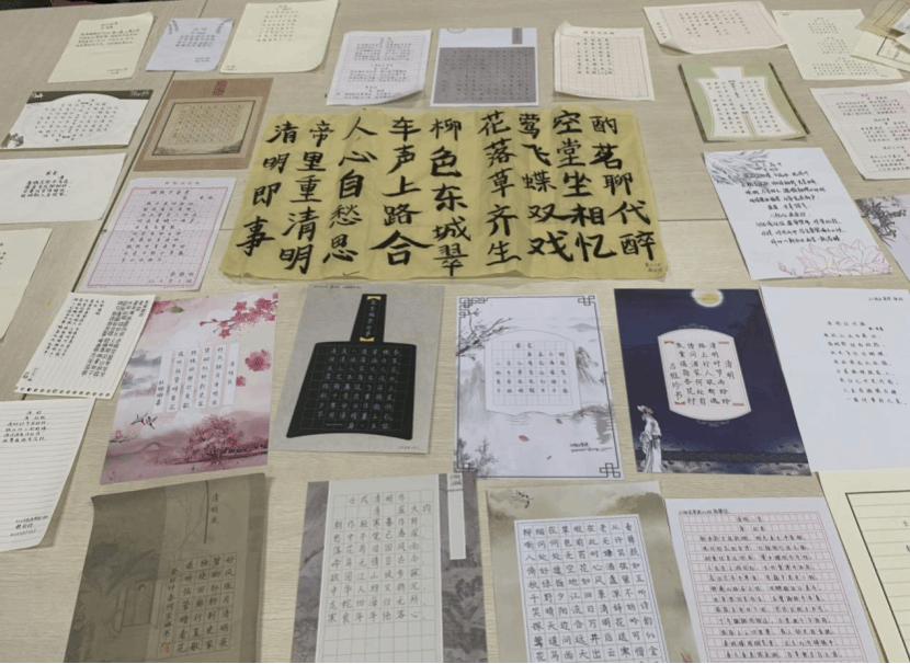 一岁一清明,一年一追思。本次清明寻诗词活动包括作画清明意境图和誊写清明诗词两种参与方式。参与本次活动的同学们在雨纷纷的清明时节,寻诗作画、吟诗誊写,在诗词中与古人神交。优美动人的诗词通过一笔一画体现出来,让大家深刻感悟古诗词中的意蕴。