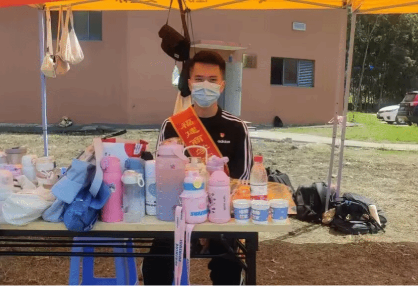 学生党员帮助新生看管水杯等物品
