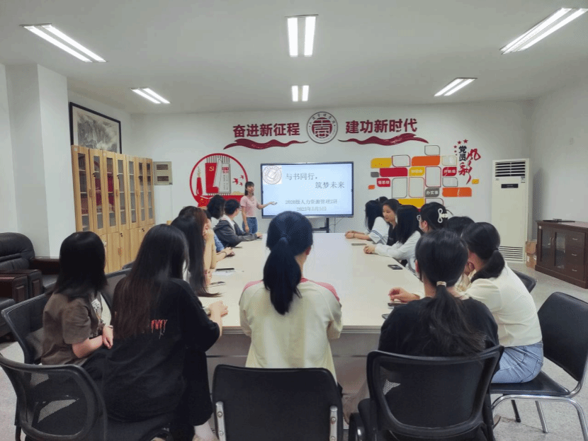 为提高全社会文明程度,提高班级同学道德水准和文明素养,2023年5月5日,2020级人力资源管理2班在世界杯体育官方网站党员活动室开展“与书同行,筑梦未来”为主题的读书月志愿活动。
