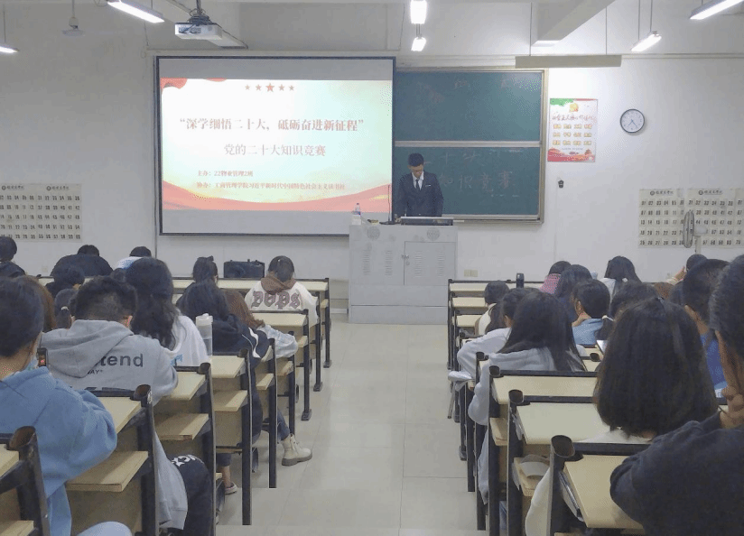 为深入学习贯彻落实党的二十大精神、全国两会精神,不断增强青年们的使命感与责任感,5月8日,世界杯体育官方网站读书社联合2022级物业管理2班于笃行楼T3共同举办“深学细悟二十大,砥砺奋进新征程”主题知识竞赛。