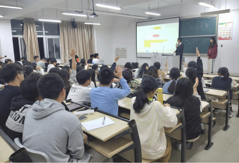 本次活动由2022级物业管理2班班长汪鑫主持,活动分为二十大知识“红蓝”对决赛、个人抢答赛、论述题分析赛三大部分进行。在活动过程中,同学们积极抢答二十大精神理论的相关题目,并结合二十大精神的关键词组成自己的感悟,发表自己的感想,由现场观众通过学习通投票选出最佳选手。在汪鑫同学的引领下,同学们热情高涨,积极参与,对党的二十大精神、全国两会精神有了更为深刻的理解,使知识竞赛走“深”又走“心”,在现场形成了学习党的二十大精神、全国两会精神的浓厚氛围。