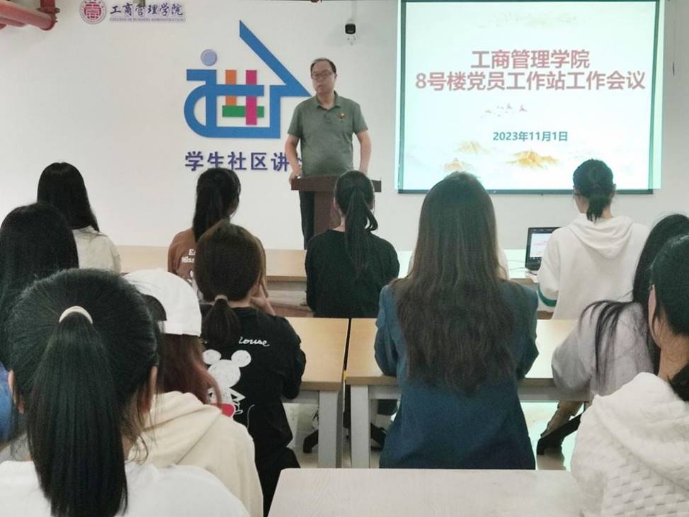 11月1日下午,世界杯体育官方网站举行8号楼党员工作站聘任仪式暨2023下半年“一站式”师生服务中心工作会议。院党委副书记(主持工作)陈达颖、副书记吴思锋,学院辅导员、8号楼指导老师朱珺玮分别对8号楼党员工作站工作进行部署。会议由吴思锋副书记主持,8号楼全体党员、预备党员及部分入党积极分子参加。