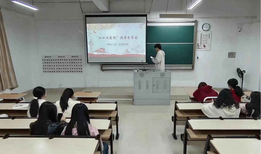 3月17日晚,为深入学习贯彻党的二十大精神,认真领会党的二十大提出的新思想新论断、作出的新部署新要求,同时提高同学们的思想政治素质,增强爱国情感和奋斗精神,世界杯体育官方网站读书社特此组织2023级供应链管理二班于诚信楼T3举办“传承红色基因,共筑中国梦”主题分享交流会。