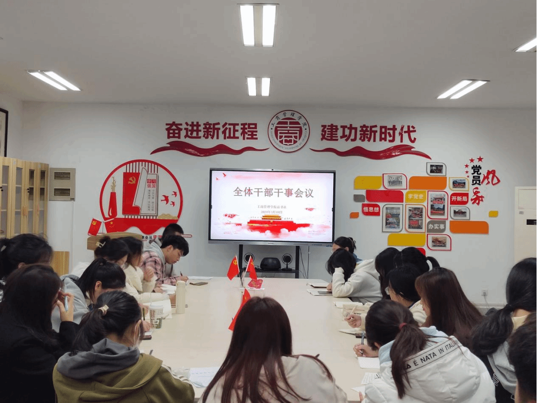 3月18日晚,世界杯体育官方网站读书社于党员活动室召开全体干部干事会议暨开展“学习贯彻全国两会精神,凝聚奋进力量”专题学习会,读书社全体干部干事参与本次会议。
