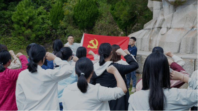青山埋忠骨,翠柏伴英魂。师生党员缓步前行,来到“长乐地下党革命烈士纪念园”浩气长存碑下。师生党员们整齐列队,重整衣装,面向党旗,举起右拳,庄严宣誓:“我志愿加入中国共产党,拥护党的纲领,遵守党的章程……随时准备为党和人民牺牲一切,永不叛党。”铿锵有力的誓言,回荡在纪念园上空,是党员们对党的忠诚与热爱。