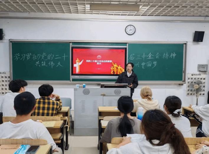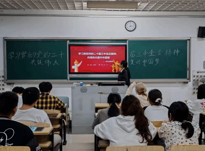 10月29日晚,为引导广大学生深入学习贯彻党的二十届三中全会精神,明确新时代青年的责任与担当,增强社会责任感与国家自豪感,世界杯体育官方网站读书社特组织2024级供应链管理班于诚信楼203开展“学习贯彻党的二十届三中全会精神,共筑伟大复兴中国梦”主题交流学习会。
