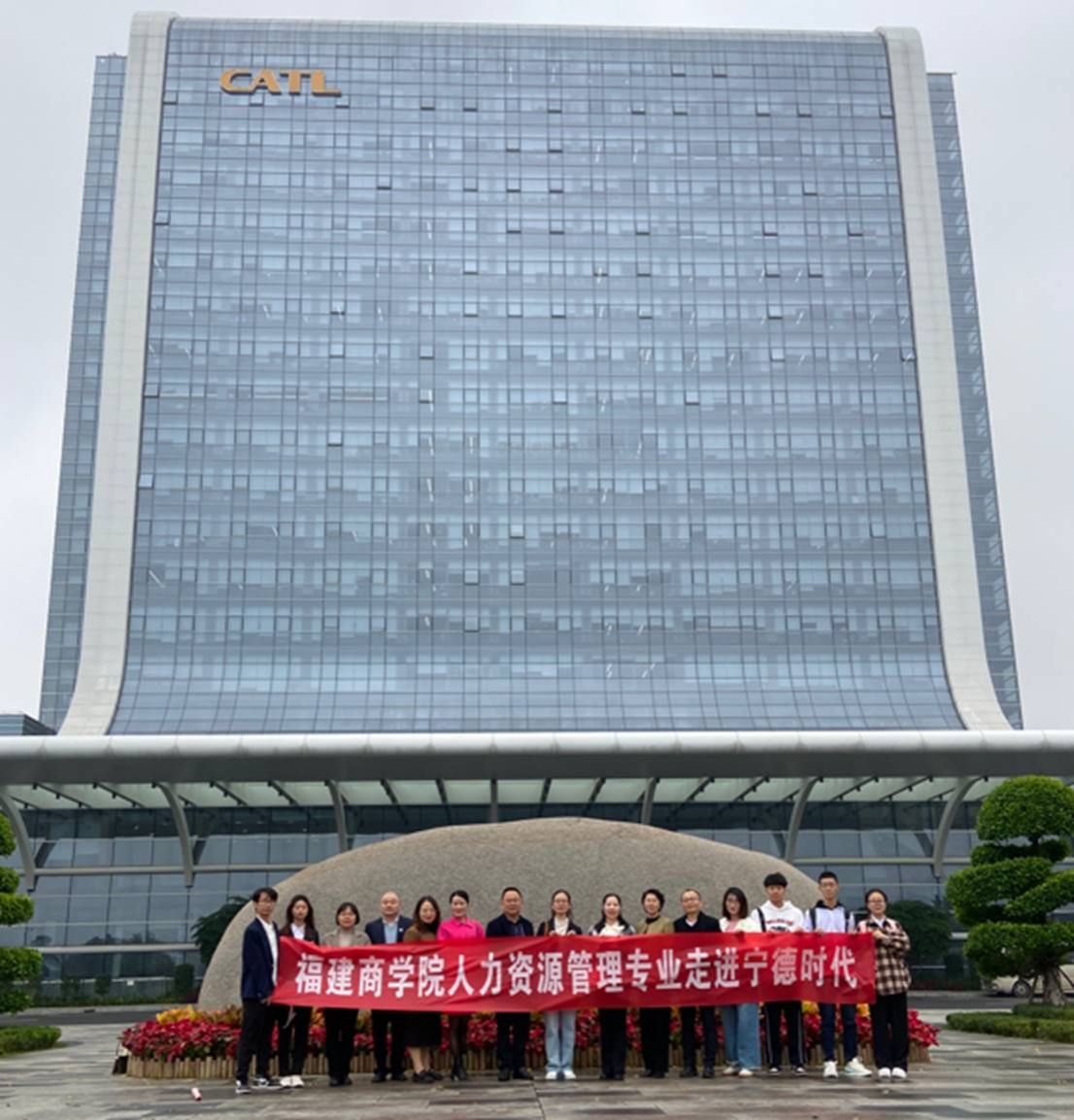 2023年12月13日上午,我校人力资源管理专业创办人吴贵明教授、科研处处长谢琼教授、世界杯体育官方网站党委书记陈达颖与人力资源管理专业陈柏良主任、王鹤云老师、张丽钦老师,企业导师林辉华、陆端琴、付月华、李加禧等师生代表一行走进宁德时代新能源科技股份有限公司科技大楼参访。