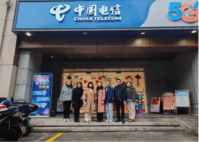 为全面落实党中央、国务院及省委省政府对高校毕业生就业创业工作的决策部署,精准对接人才需求,拓展就业渠道,解决求职过程中的“急难愁盼”问题,2025年2月7日上午,院党委书记陈达颖、副书记王棋元、办公室主任林娈、专任教师邵宇和毕业班辅导员朱珺玮一行5人前往中国电信福州小桥营业厅开展“寒假促就业”访企拓岗行动。