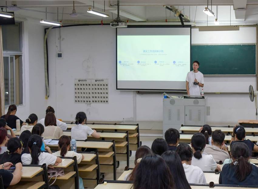 “AI求职力:你也能成为文案、策划与运营大咖”专项培训特邀兰佳文老师担任主讲,聚焦AI在文案创作、活动策划、运营推广中的实战应用,帮助学生掌握了至少3类AI工具的使用方法,提升了在相关岗位的就业竞争力。活动现场还设置了企业HR分享环节,搭建了学生与企业之间的交流平台,促进了就业对接。