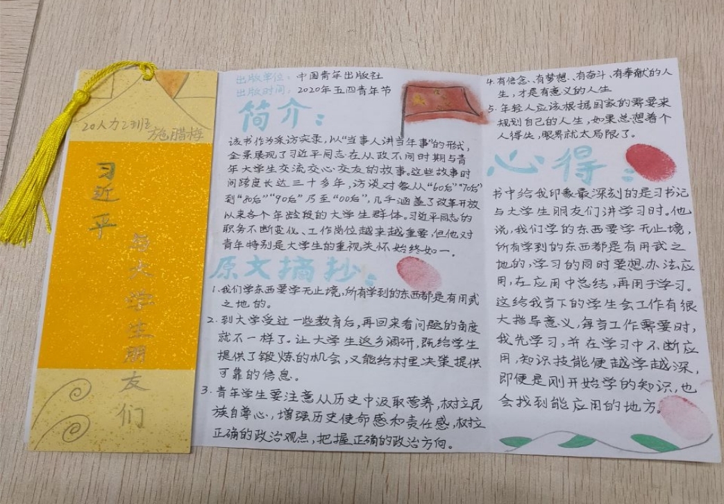 通过本次“传承五四精神,展现青春风采”优秀读书笔记评选活动,进一步深化学生党员爱国主义教育和革命传统教育,倡导学生党员把爱国主义与社会主义有机结合起来、把民族精神与时代使命有机结合起来、把个人成长与社会责任有机结合起来。在回顾和缅怀令人难忘的革命历史岁月的同时更好的立足当下、展望未来,展现新时期青年的风采。 供稿:世界杯体育官方网站学生第二党支部