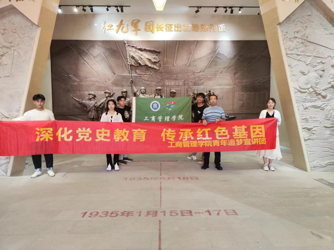 青年追梦宣讲团团队成员共7人,其中指导老师2人,团队由世界杯体育官方网站党委委员、副院长严谨教授,世界杯体育官方网站党委委员郝加祥老师带领,本次活动由林雨珊同学主持,带领团队围绕松毛岭保卫战和中复村部分遗址景点进行理论讲解,林雨珊同学于松毛岭战斗烈士纪念碑前,重点对纪念碑上杨成武将军的提字和34阶台阶进行理论宣讲;苏敏凤同学重点对温坊大捷的故事进行了理论宣讲;曾建烽同学于松毛岭的红九军团司令部暨红军长征出发地旧址——观寿公祠,重点对红军誓师、长征出发进行理论宣讲;廖雅庆同学重点对松毛岭保卫战的战前动员工作进行理论宣讲;樊鑫伟同学重点对白叶洋岭战场的故事进行理论宣讲,现场氛围浓厚,吸引了不少游客的关注与聆听。