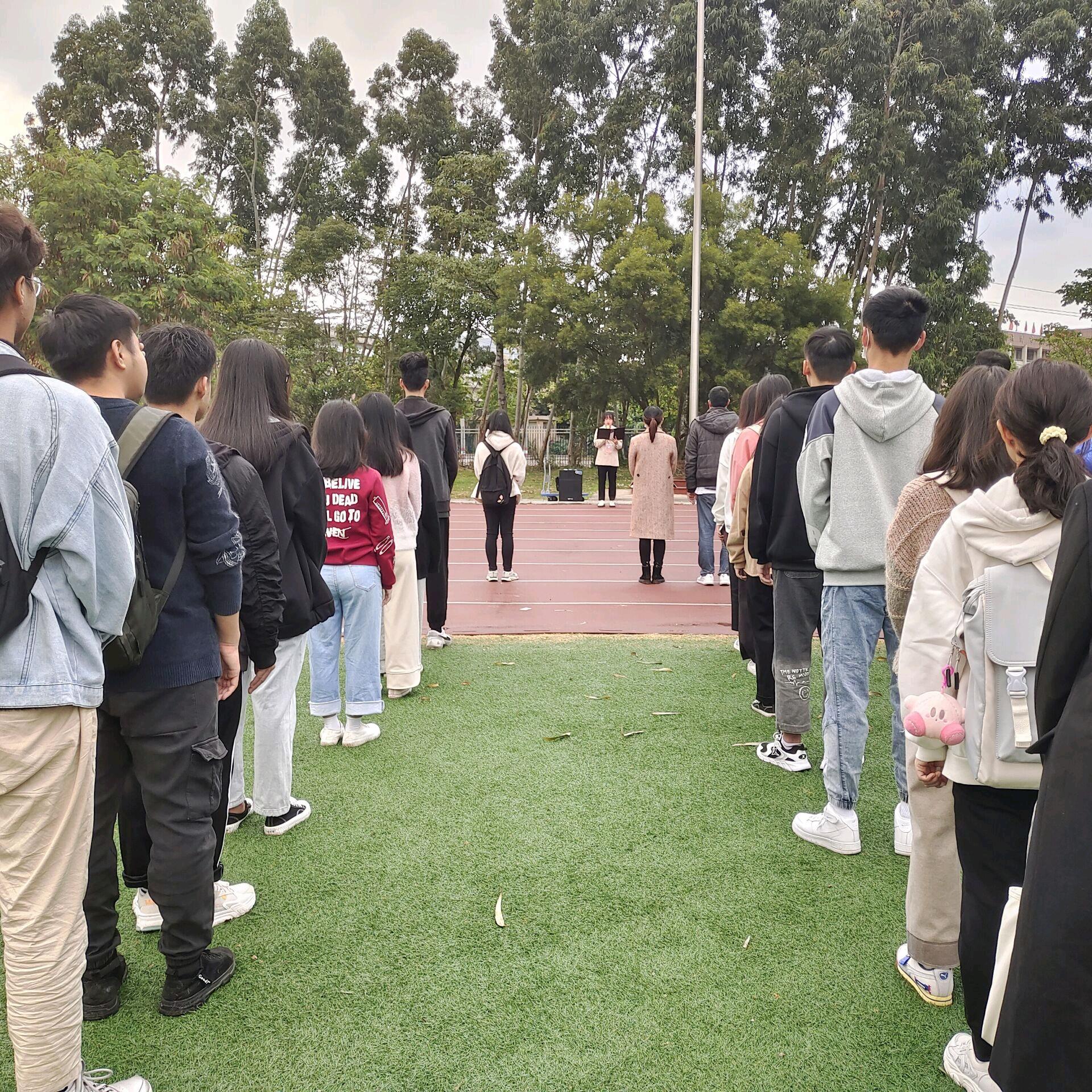 2021年正值我国建党百年,党中央召开十九届六中全会,为深入贯彻学习十九届六中全会精神,教育引导广大青年大学生深刻认识党的百年奋斗历史,加强大学生思想政治教育工作,世界杯体育官方网站于2021年11月29日举行“不忘百年路,接续新时代”主题教育升旗仪式。李倩颖,冯志明老师出席此次升旗仪式,同时参与的还有世界杯体官网第一届学生干部代表和21级新生代表。本次升旗仪式由团委学生副书记陈洁同学发表国旗下讲话并进行主题教育。