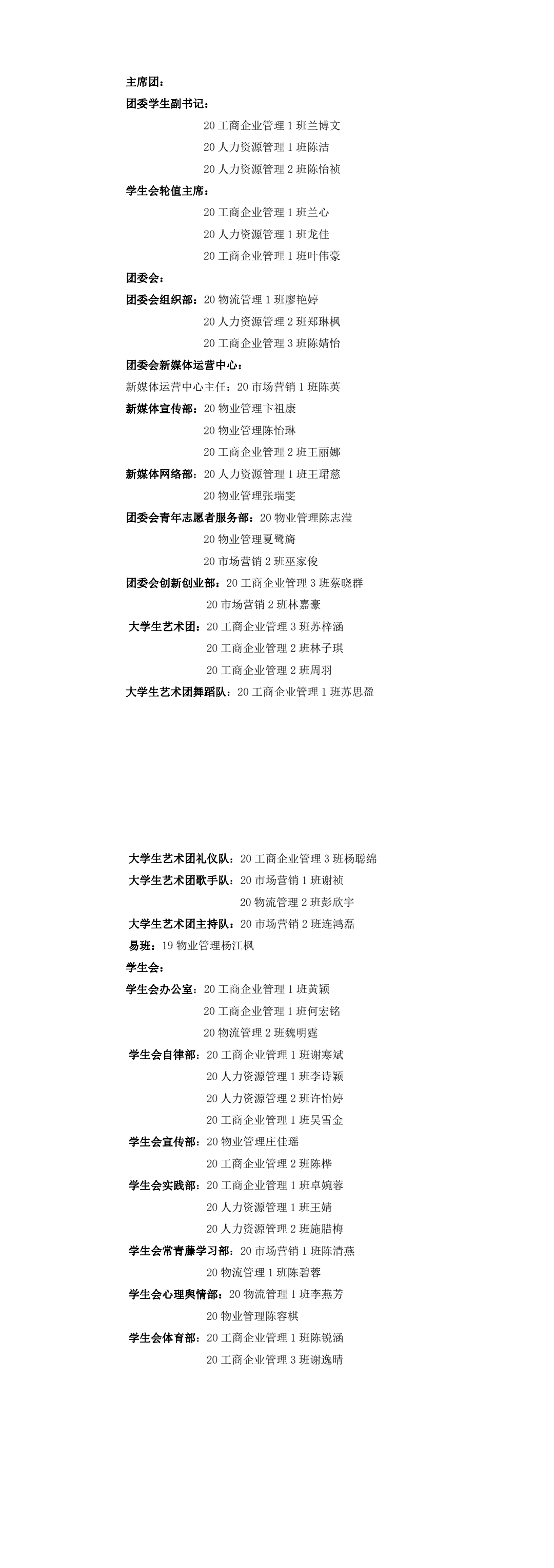 世界杯体育官方网站第三届学生干部名单