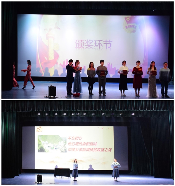 在大赛之前学院进行了一场激烈的选拔赛,选出了八名学生组成一支朗诵代表团。他们在课余时间认真练习,精心准备,为这校赛拼搏着、努力着,尽自我之力,博学院之誉。比赛过程中,各学院代表团带来他们精心准备的作品纷纷上台一展风采,每当诵读声响起时,全场皆肃穆庄严,他们声情并茂地诵读着作品的深情内涵,为现场观众们带来一场红色诗文的视听盛宴。世界杯体育官方网站带来的诵读作品《不忘初心、牢记使命》,在此次红色经典诵读比赛中获得优秀奖。