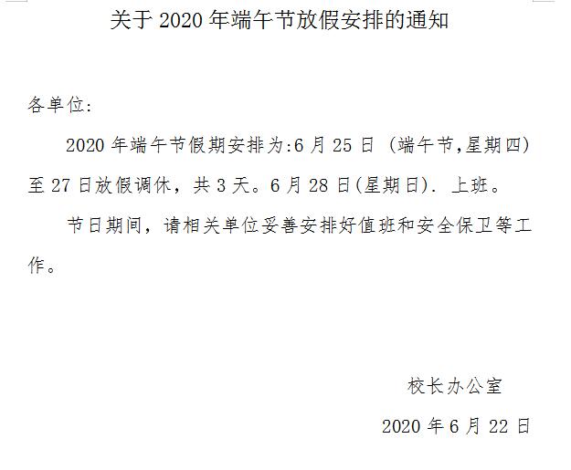 关于2020年端午节放假安排的通知