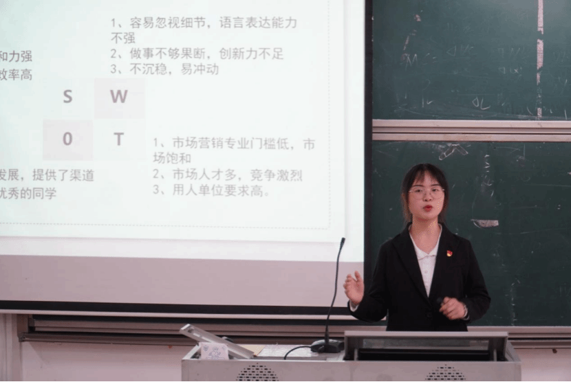 5分钟,满含激情,侃侃而谈,在同学们聚精会神的注视下,每一名选手都在竭尽全力,引经据典,严谨细致地阐述和分析着自己的职业生涯规划作品,步骤完整,表述清晰,目标明确,措施具体,分析到位,结合自身的时机情况,对个人职业生涯主客观条件进行测评、分析、总结,还对个人的兴趣爱好和能力特点进行综合分析与权衡,结合时代特点,依照自己职业倾向,确定了最为正确的职业奋斗目标。