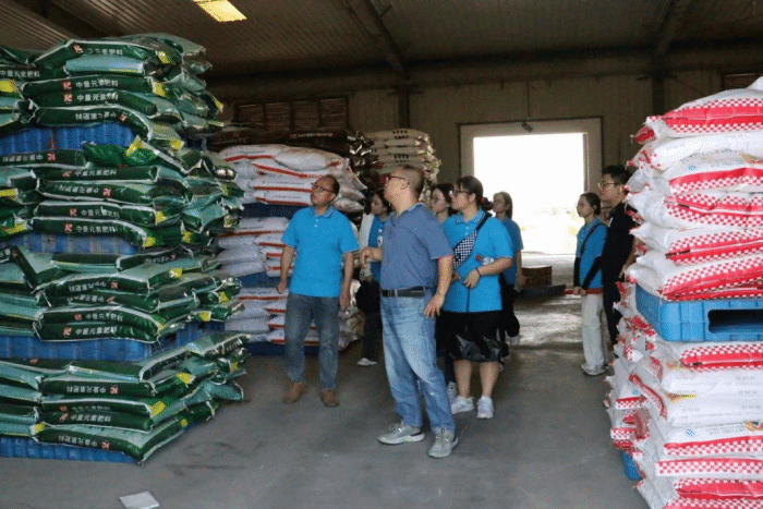 (7月5日上午,实践队员们在铁路物流园区化肥仓库参观调研。金婷 摄)