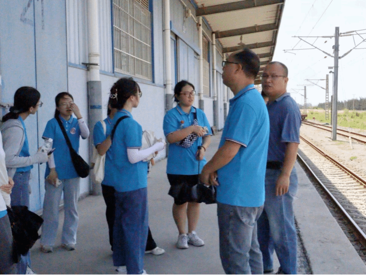 在工商管理学院党委副书记吴思锋的带领下,上午九点半,实践队到达江阴铁路物流园,南昌铁路局福州江阴支线有限责任公司经理詹世果和工程师王光辉热情接待了实践队一行。