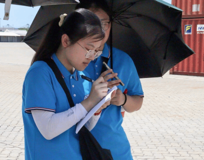 (7月5日上午,实践队员在铁路物流园区做专业调研。金婷 摄)