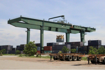(铁路物流园大门一隅。金婷 摄)