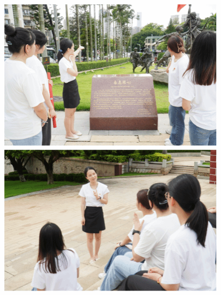 6月29日下午,队员们前往厦门市革命烈士陵园,先后参观了革命烈士纪念碑、烈士陵园、群雕“永志铭心”、浮雕“光辉永驻”等纪念性建筑群。李丹丹老师在革命烈士纪念碑前给队员们上了一次党课,重温解放厦门战役以及革命先烈的英勇付出。山因脊而雄,屋因梁而固,英烈就是中华民族的脊梁,我们要永远铭记他们的牺牲和奉献,赓续共产党人精神血脉,坚定理想信念,砥砺革命意志。