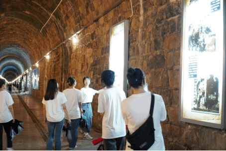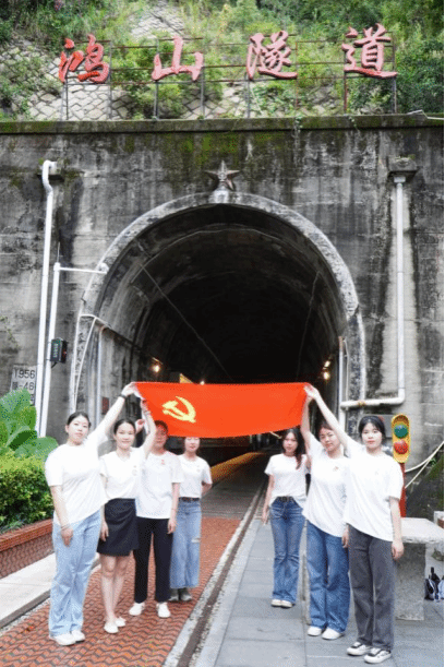 为了解铁路文化,深刻学习铁路发展历史,7月1日,队员们来到了铁路文化公园及鸿山隧道进行参观学习。这条轨道线属于福建历史上首条铁路——鹰厦铁路的延伸线,鸿山隧道又像一座时光交错的博物馆,队员们通过两侧的布展、浮雕、灯箱、彩绘等了解到了铁路百年发展历史以及文化。