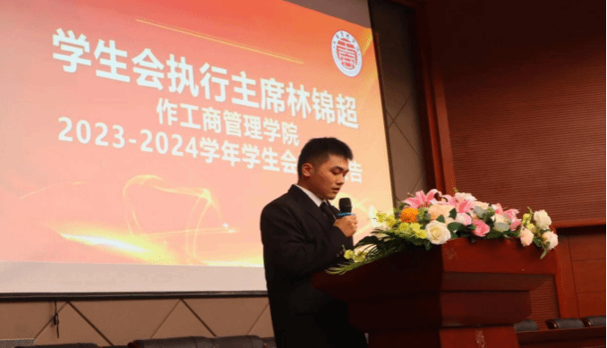 紧接着,学生会执行主席林锦超作世界杯体育官方网站2023-2024学年学生会工作报告。报告全面回顾了过去一年学生会的工作亮点和成果,分析了存在的问题和不足,并提出了未来一年的工作目标和计划,抒发了对探索改革创新、书写青春篇章的美好期望。